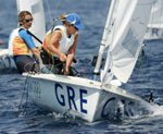 Emilia Tsoulfa ( L) and Sofia Bekatorou (R) win the gold medal for Double-handed Dingy women’s- 470