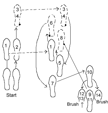 | 13 | quick | Swing left foot forward brushing ball of left foot next to right as you swing past. |