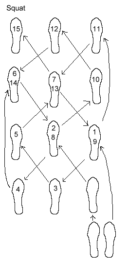 | Repeat A. Steps 1 through 5. Step C5 however, becomes Step D1 and ends in forward squat |